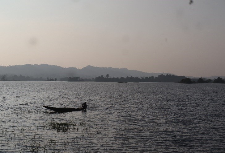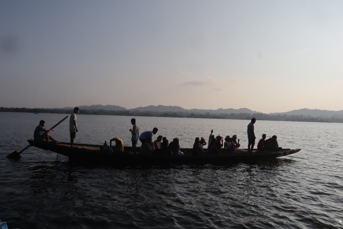 It was a sunny day when Kairu, a 65-old-man while slicing a juicy and delicious orange color of papaya, narrated to us in his sitting position about the olden days, how dumboor was then and for the people who were residing near to it. According to him Chakma, Reang, Nepali, Tripura - these are the people who lived together back then. He told us that, the Dumboor lake has never been a lake. He stated ‘The lake you see now, once used to be the land of twelve thousand families including mine. It was merely used as waterways to carry the goods on the bamboo-made raft.’ From this, we came to know that there was a time when tribal people would go to sell goods and use the water of the lake, which was then a waterway for good transportation. They would go with a few friends through the Gomati River which was formed by the Saima and Raima rivers. People used to go to sell ‘Ghee’ ‘Mustard’ ‘Til’ ‘Paat’ carrying them on a bamboo-made boat in Chakma known as “Bhoor”. While flowing through the river once they reach Tirthamukh, they would worship the goddess of that place for their safe travel, or else they believed that without praying for them they would not achieve a successful journey. It took months to take them for selling through the water path, but they had enjoyed the journey. When they would go on a long journey, they would leave their domestic cows to Nepali families. For about 6 months they would give all their cows to Nepalis. According to him, these Nepalis were brought by King Bir Bikram Kishore Manikya Debbarma for rearing cows and buffalos and for making dairy products like ghee, cheese etc, as they were known to have skills to look after these animals. Once the tribal people reached to main markets like Natunbazar, Melaghar, and Amarpur, they would sell all the goods and come back to the village after 2-3 months. After returning they would take back their cows from the Nepalis. From this, we comprehend that the Gumti Twisa or Gomati River was a huge waterbody and merely used for good transportation.